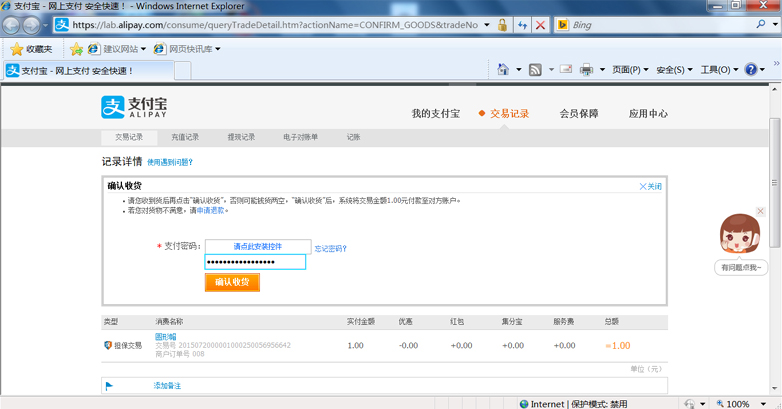 收货确认图示(支付宝)