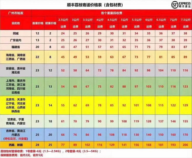 顺丰荔枝价格表,自己计算邮费